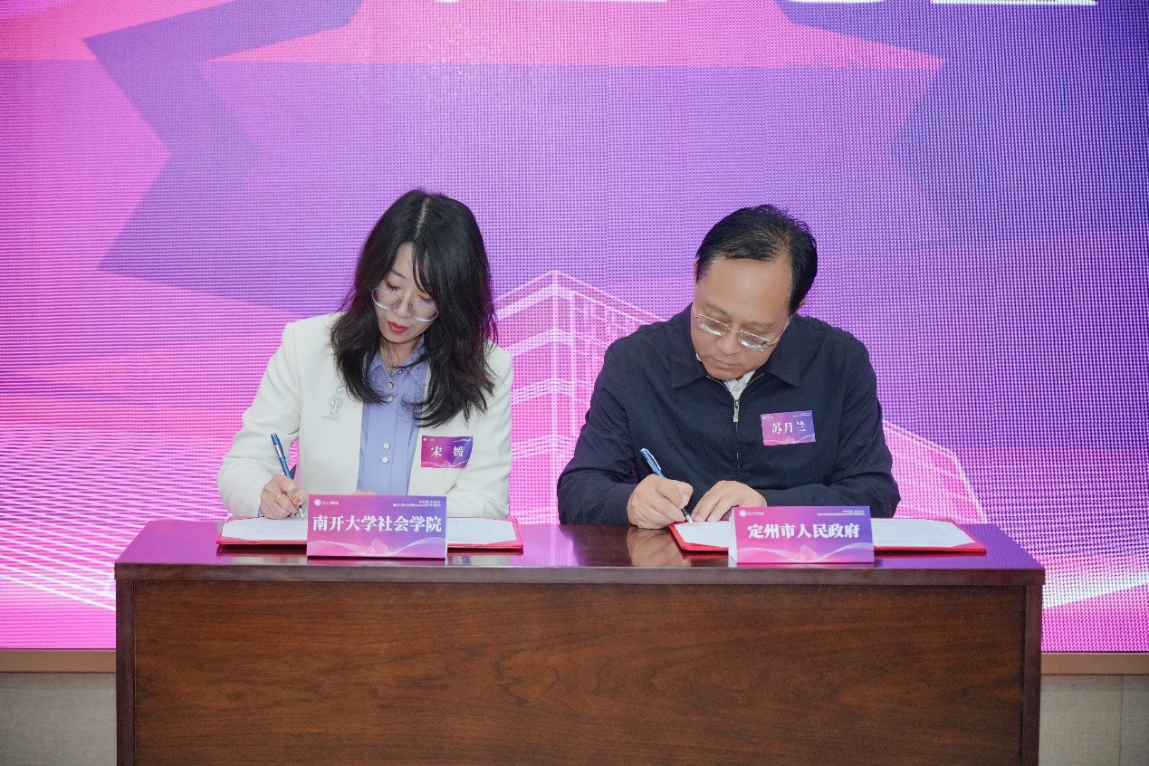 党委书记宋媛、定州市人大常委会副主任苏月兰代表双方完成签约并共同为基地揭牌。双方将秉持“联合共建、常态运行、注重实效、协同育人”的原则深入推动基地社会实践活动朝着机制化、常态化、长效化方向发展。